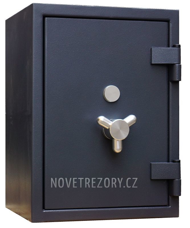 Kvalitně postavený a nadstandardně vybavený trezor z produkce firmy FORMAT moderní konstrukce se zaručenou ochranou 80 / 120 RU proti útoku nástroji s mechanickými a termickými účinky. Třístranné centrální zavírání na dveřích doplněné na straně závěsů masivním pevným uzávěrem. Hloubkově chromované zamykací čepy nadstandardního průměru 40 mm. Vnější panty pro plné otevření dveří a možnost vysazení při stěhování. Dodatečné ochrany rozvorového mechanismu proti termickému a mechanickému napadení. V základu s klíčovým zámkem (160mm dlouhé klíče). Za příplatek mechanický kombinační, nebo elektronický zámek s možností nouzového otevření klíčem. Elitní výrobek III.BT. RAL 7024
