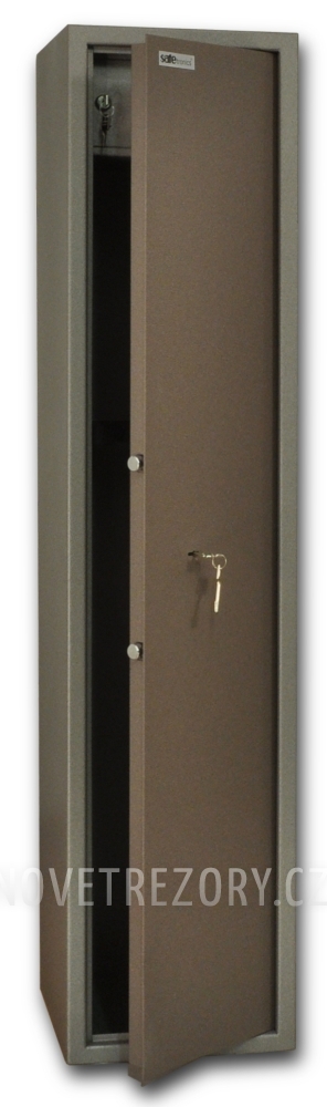 Skříň na dlouhé zbraně ZSL 5 M Jednoplášťová skříň určená na uložení až pěti dlouhých zbraní. Korpus z kvalitního ocelového plechu tloušťky 2,5 mm. Deska dveří je z plechu o tloušťce 3 mm. Trezorový zámek MAUER se zvýšenou bezpečností třídy „A“ podle EN 1300 uzamykající do 4 bodů. Vnitřní vybava obsahuje držák s pěnovými opěrkami na zbraně, samostatně uzamykatelná schránka a držák na potřeby pro čištění. Dno skříně je pokryto filcovou textílií. Kvalitní dílenské provedení a polyuretanové barvy s vysokou odolností, zabezpečí dlouhodobé uchování uživatelské hodnoty výrobku. Skříně jsou certifikované v bezpečnostní tídě S1 podle EN 14450:2005 + 15RU + A EN 1300