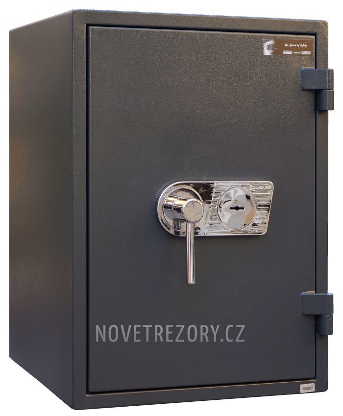 Ideální k ochraně dokumentů před ohněm a vloupáním. Dveře o síle 105mm, stěny 77mm, zadní stěna 51mm.