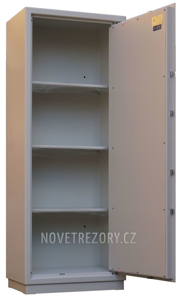 Vnitřní prostor je rozdělen poličkami pro uložení pořadačů (šanonů). Lze dovybavit vnitřní zamykatelnou schránkou ( + 2410,-Kč bez Dph).