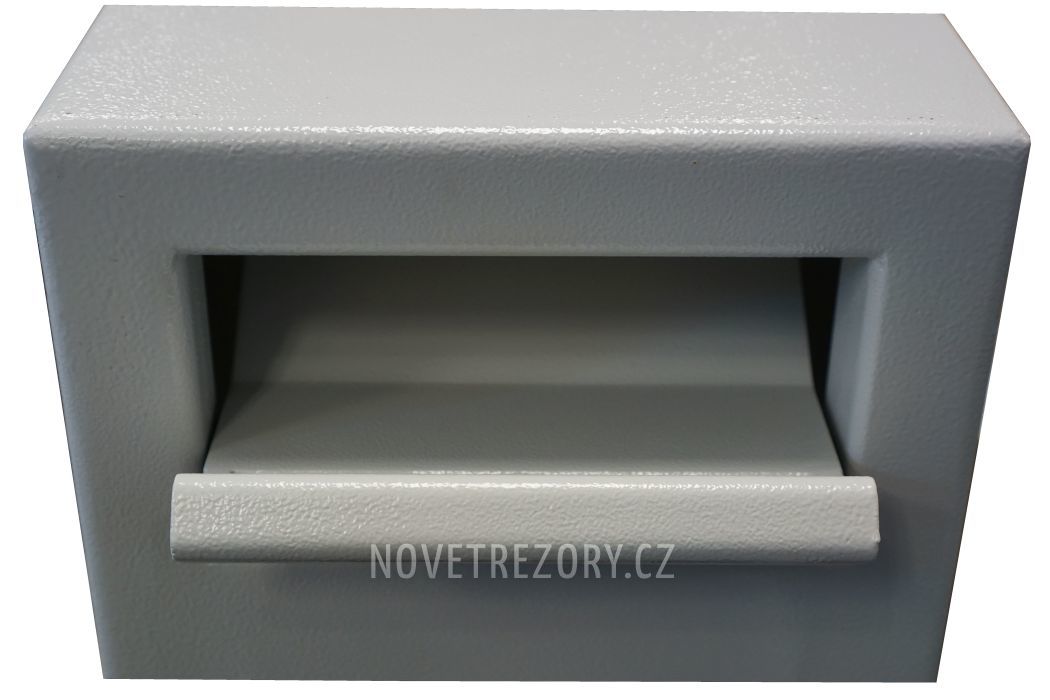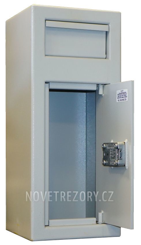 Ve stálé nabídce máme velmi oblíbený vhozový trezor / sejfík s předním vhozem a ocelovým hřebenem bránící vytažení vhozeného předmětu. Sejf RD 40 je vybaven kvalitním certifikovaným zámkem a je již od výroby připraven pro kotvení do podlahy i zadní stěny . Cena 4789,-Kč bez Dph https://www.novetrezory.cz/vhozovy-sejf-griff-rd-35-i1704.html